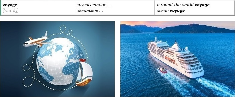 | путешествие | - trip, tour, journey, travel, voyage | |